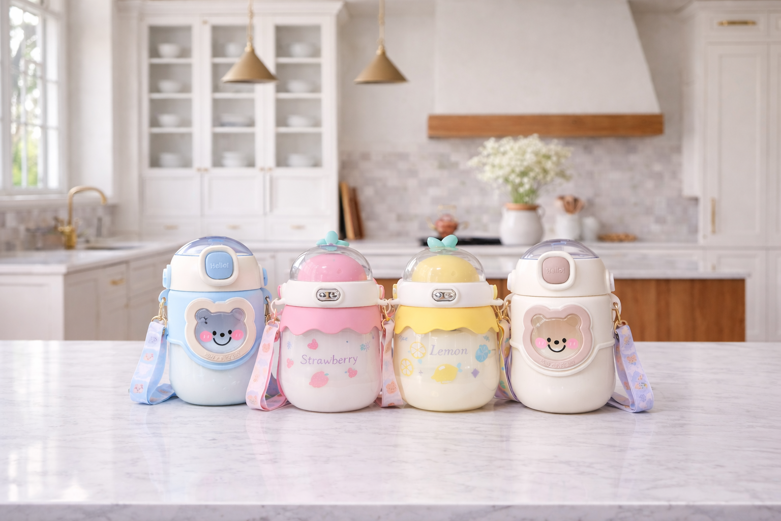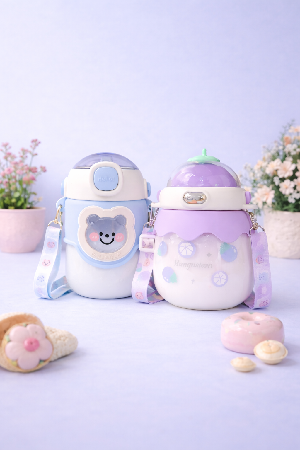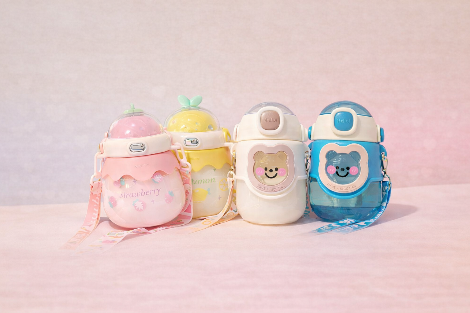 Our water bottles are designed to combine functionality, safety, and adorable style for everyday hydration. Made from BPA-free materials and built with a secure leak-proof lid, these bottles keep drinks fresh while preventing spills. Whether kids are at school, traveling, or enjoying outdoor activities, the durable design and easy-carry strap make them convenient to take anywhere.